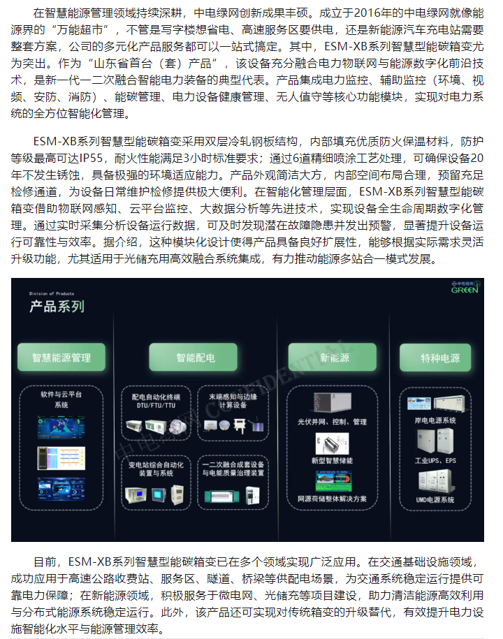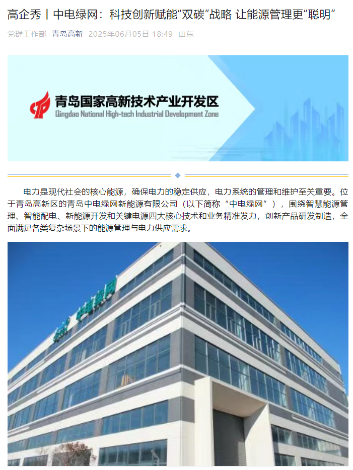 2025年6月5日,青島高新公眾號發布一篇“中電綠網:科技創新賦能“雙碳”戰略 讓能源管理更“聰明””報道,具體內容如下: