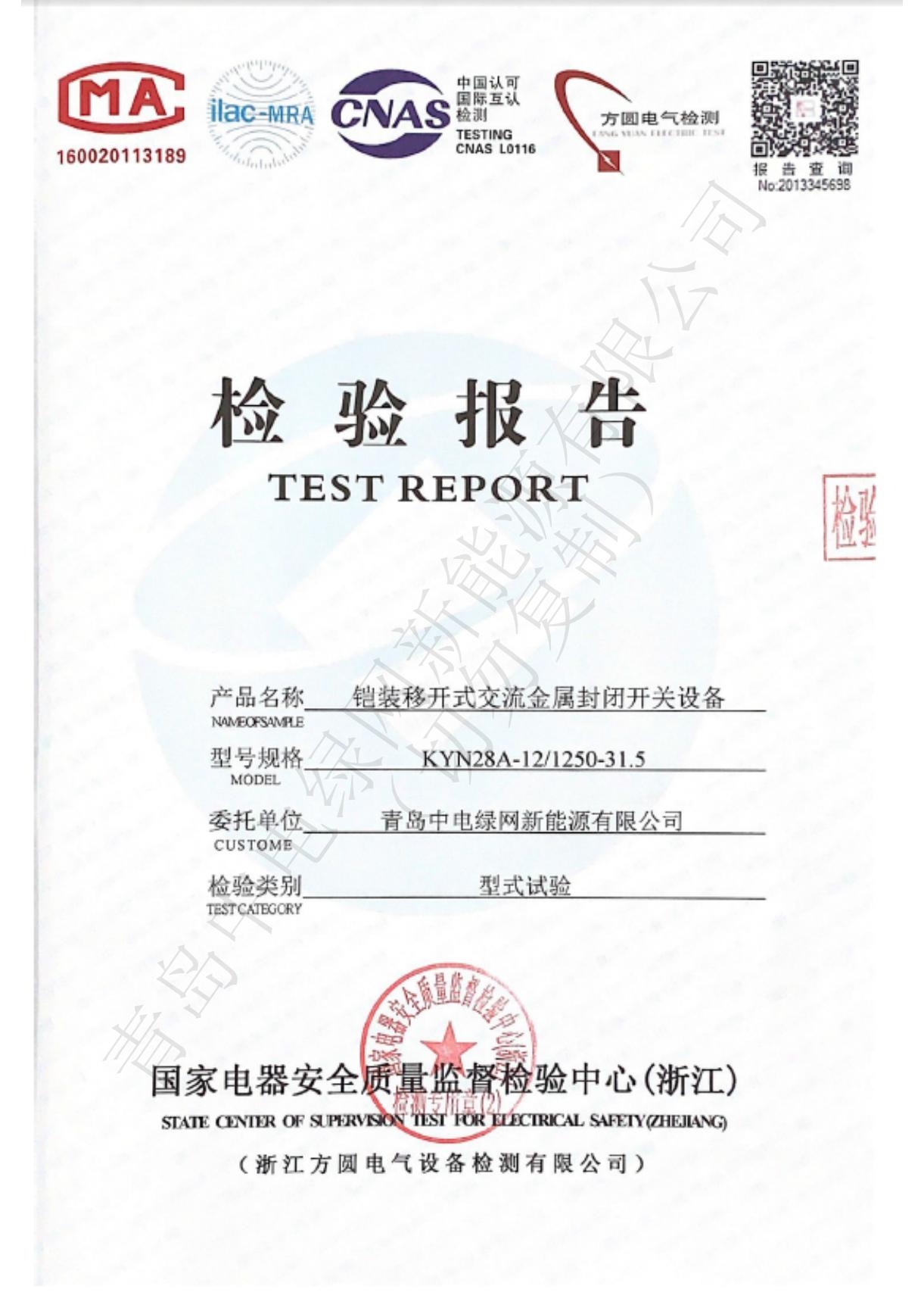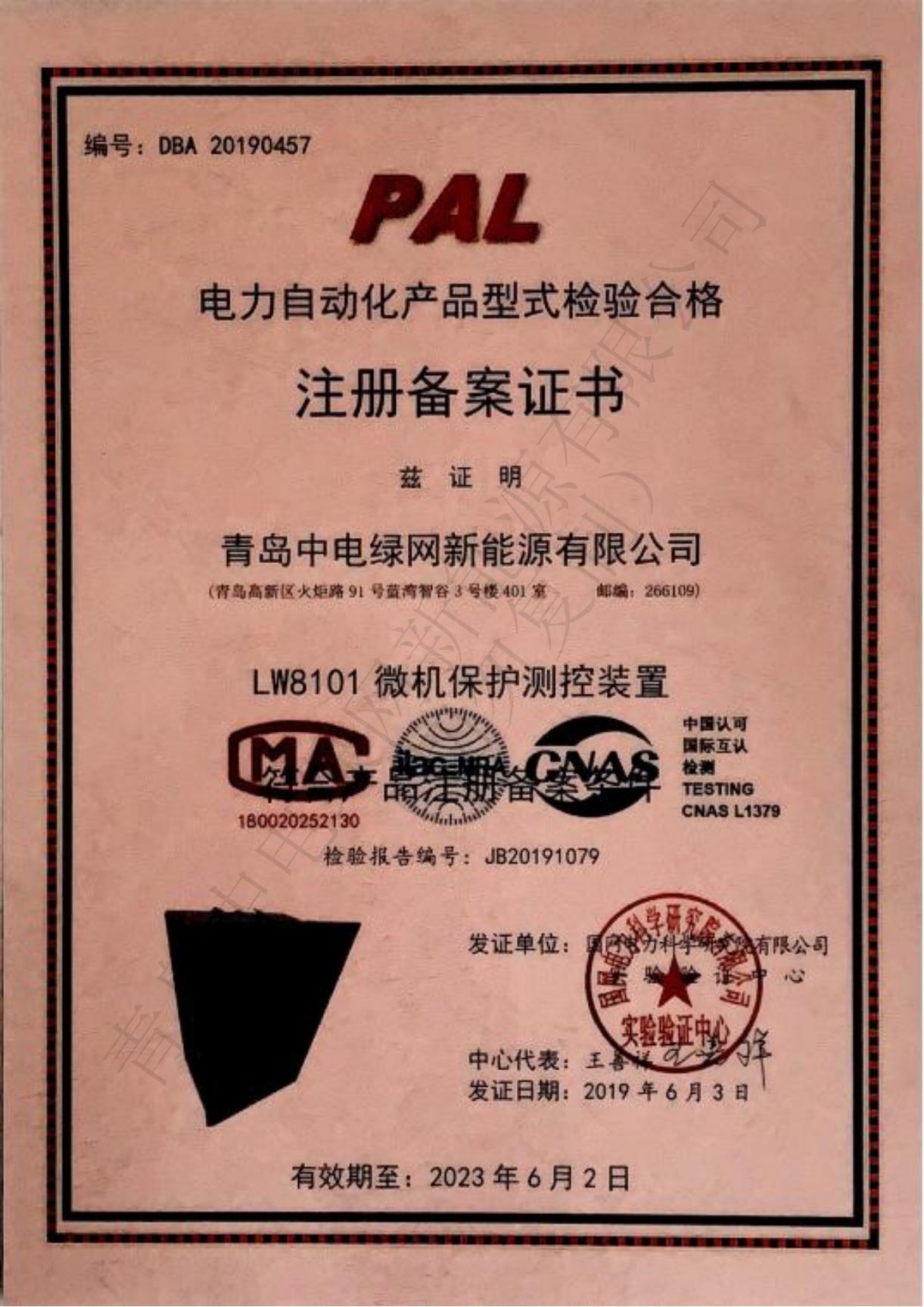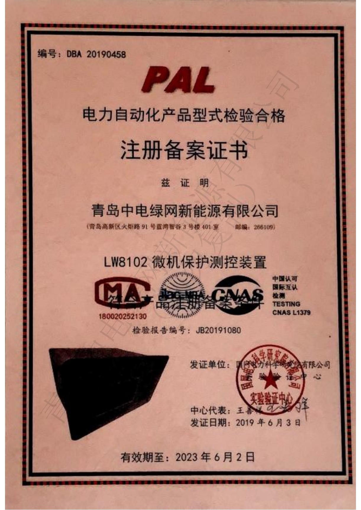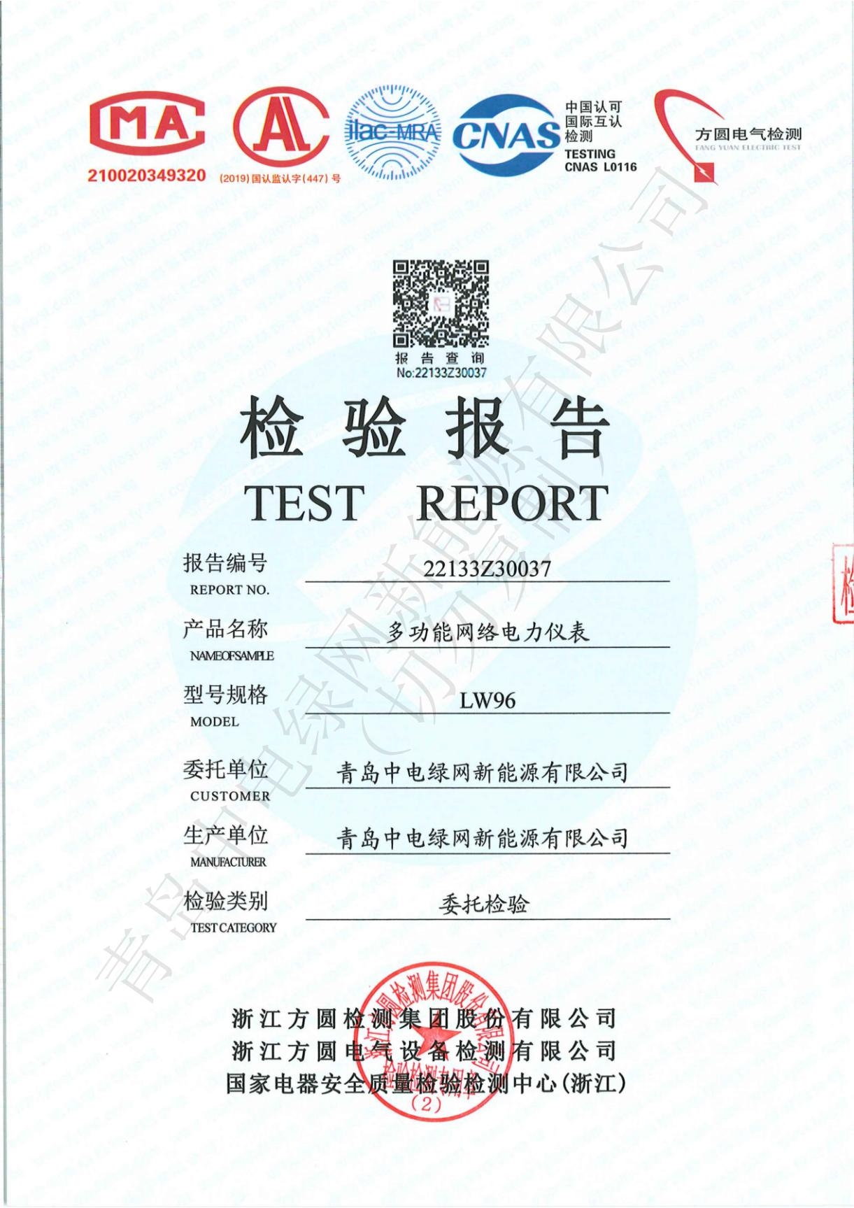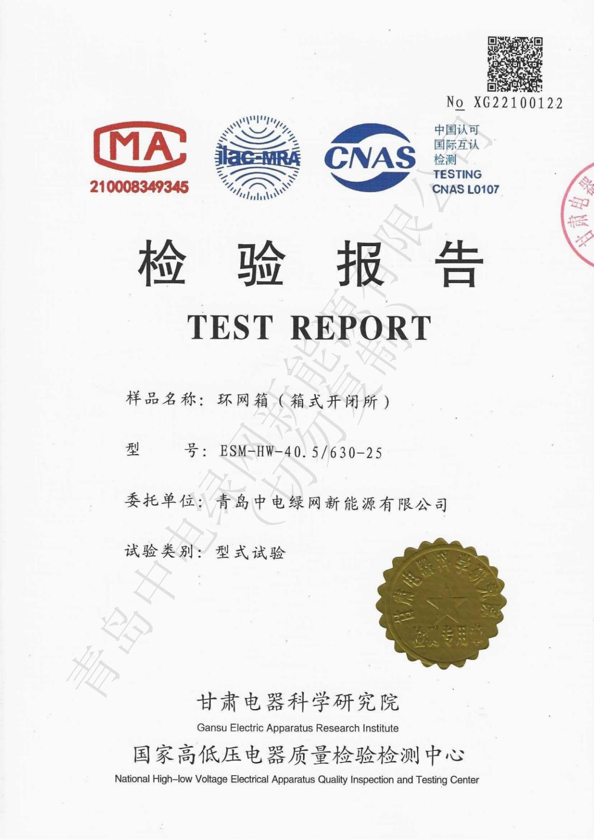 產品測試證書
