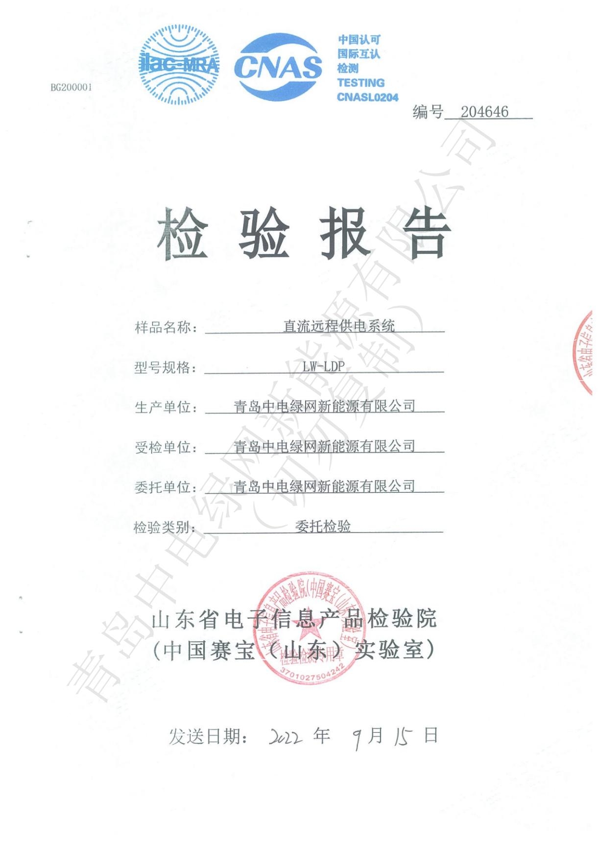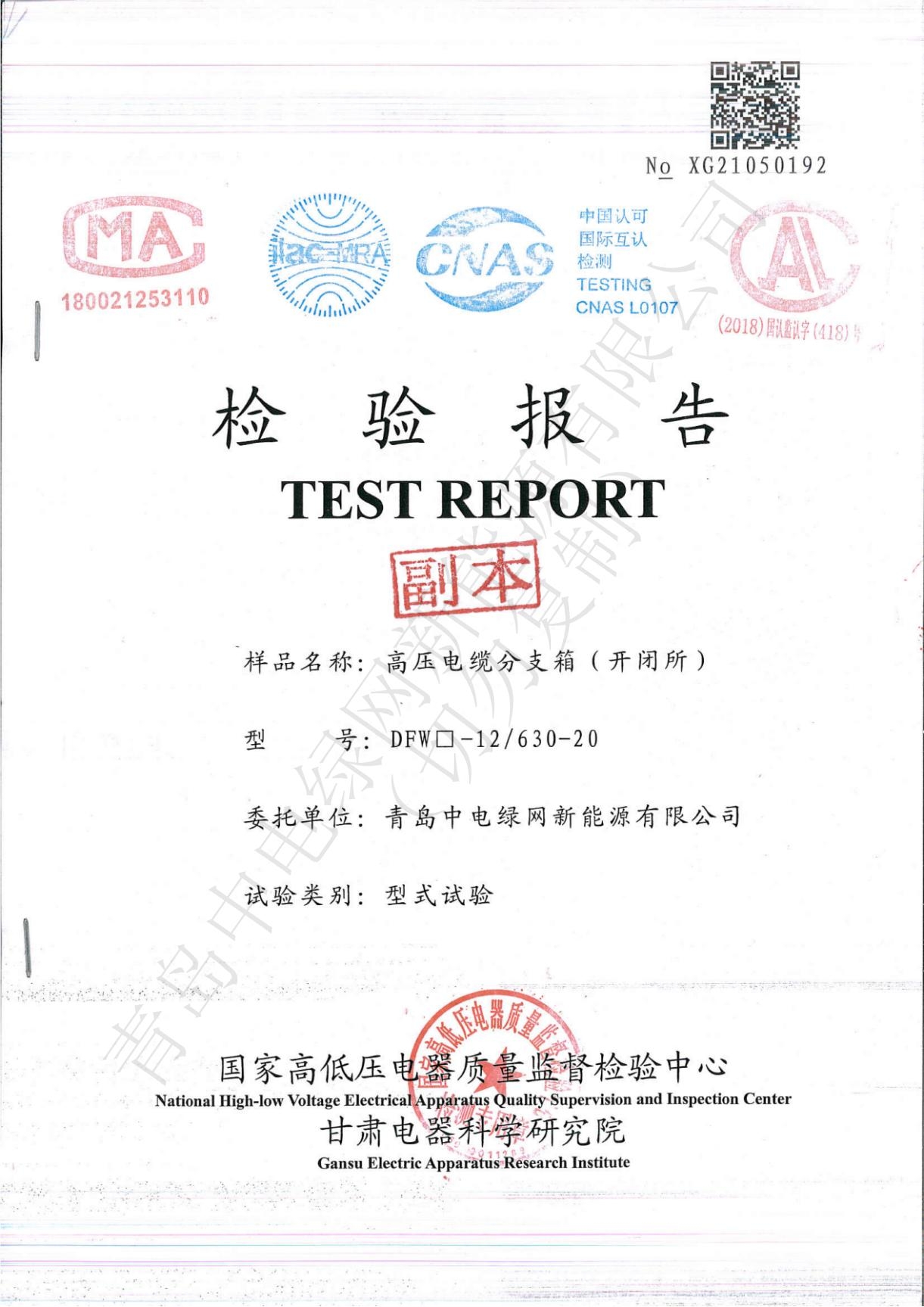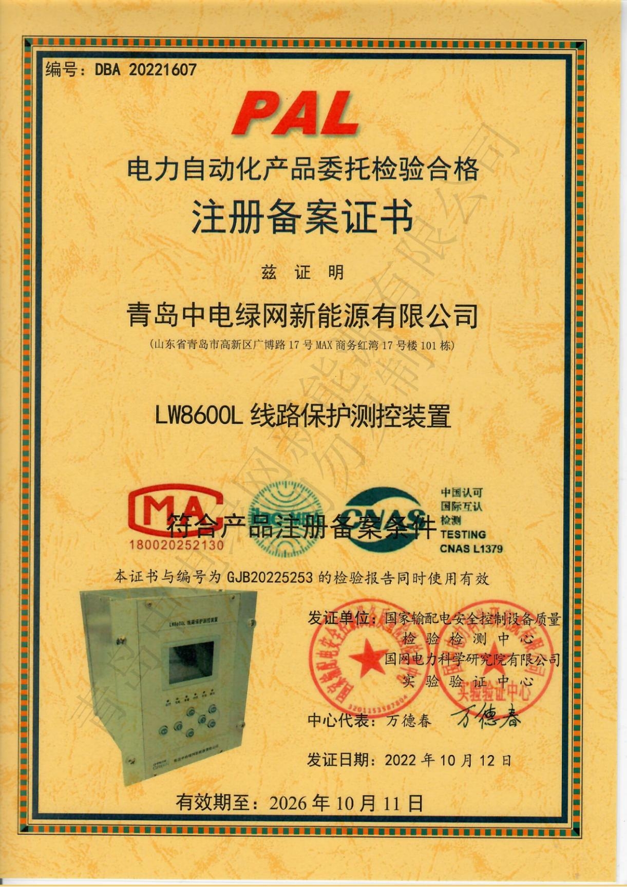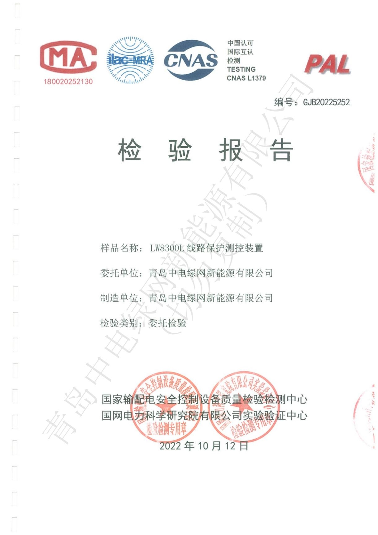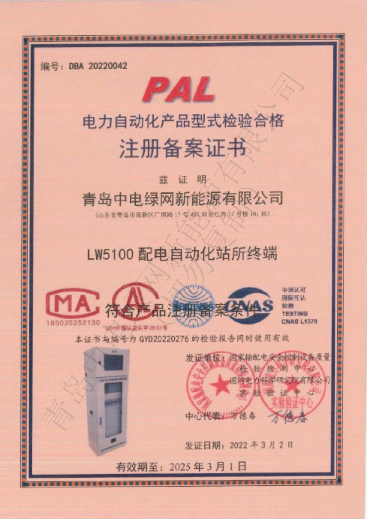 產品測試證書